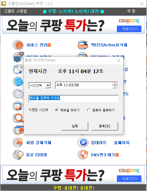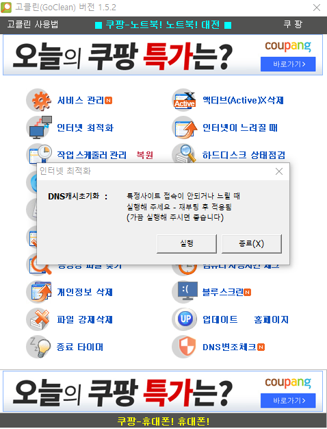 참고로 고클린 종료 시 광고 사이트 창이 뜨는 단점이 있습니다.