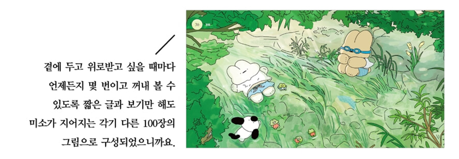 이삭과 보리라는 토끼 캐릭터로 우리가 놓치고 있던 삶의 가장 따뜻한 순간을 포착해 냅니다. 소박하지만 미소를 짓게 하는 이야기, 자연과 어우러지는 평화로운 시간, 무해한 캐릭터들로 자신의 그림을 마주한 이들이 잠시 현실의 고단함, 아픔과 상처, 외로움 등을 잊고 쉬어갈 수 있길 바랍니다. 도심이 아닌 자연을 배경으로 한 따뜻한 일상은 많은 이들에게 마음의 안정과 위로를 선사합니다. 특히 팍팍한 도시 속, 매일 반복되는 하루에 지친 현대인들에게 큰 위로가 되고 있습니다.