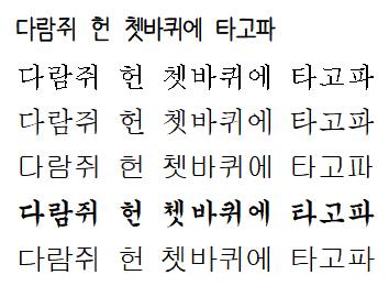이범석 작가님의 폰트로 외관상 가장 큰 특징은 크기입니다. 윗쪽 사진은 ‘다람쥐 헌 쳇바퀴에 타고파’라는 글귀를 여러 가지 글꼴로 적은 것입니다. 가장 위가 휴먼범석체이며, 순서대로 신명조-바탕-궁서-굴림입니다. 실제로 글씨를 쓸 때 작게 적는 습관이 폰트에도 반영이 잘 되었으며, 깔끔하고 둥글둥글하며 귀여운 이미지를 띄고 있습니다.