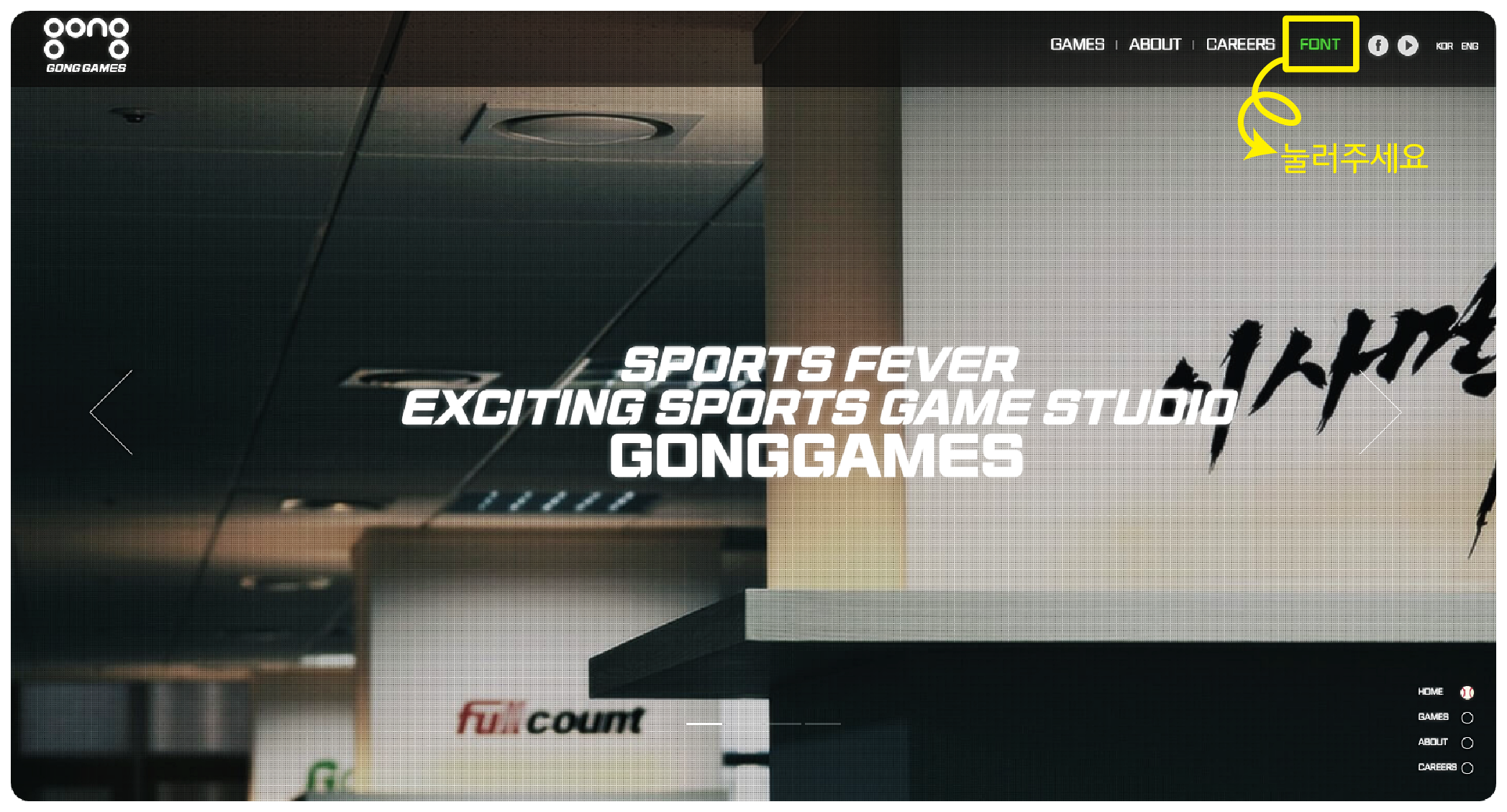 서체를 받으실 때 공게임즈 사이트 상단 메뉴에 FONT를 선택해 주십시오.