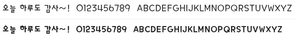 시원한 속공간과 산뜻한 인상으로 높은 주목성을 가진 현대적인 형태의 완성도 높은 본문용 고딕서체입니다. 지면보다 PPT, 앱, 웹 환경과 같이 모니터 화면에서 사용하기에 좋다고 합니다.