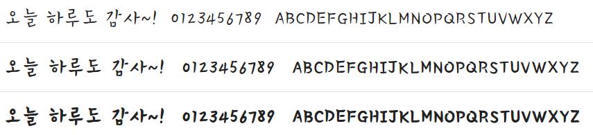 학생들이 직접 쓴 것 같은 손글씨 느낌으로 모두를 웃길 수 있는 익살스런 디자인의 서체입니다. 글자의 크기와 배열이 자유로운 것이 특징으로 학생들의 목소리를 대변하는 자막용 서체로 활용하면 좋을 것 같습니다.