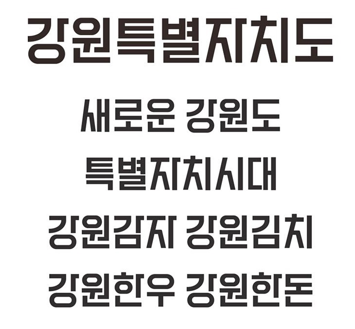 강원특별자치도 로고 유형은 상승 및 성장을 의미하며, 사선의 캐릭터 표현을 다듬고 강원특별자치도체로 재해석했습니다.