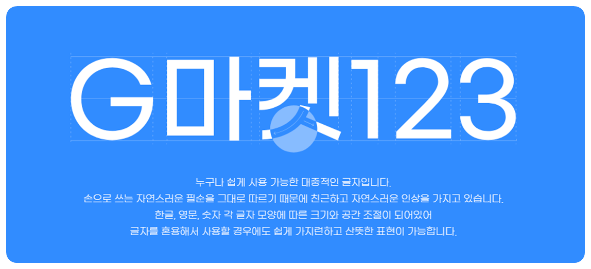 지마켓 산서 서체는 G마켓 브랜드 아이덴티티를 담은 서체로 다양한 브랜드, 판매자, 사용자가 함께 성장하며 가치를 나눌 수 있도록 만든 글꼴입니다.