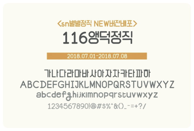 116앵덕정직 서체는 무료폰트입니다.