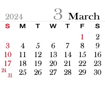 ★ 3. 2024년 달력(한국 공휴일 제외)